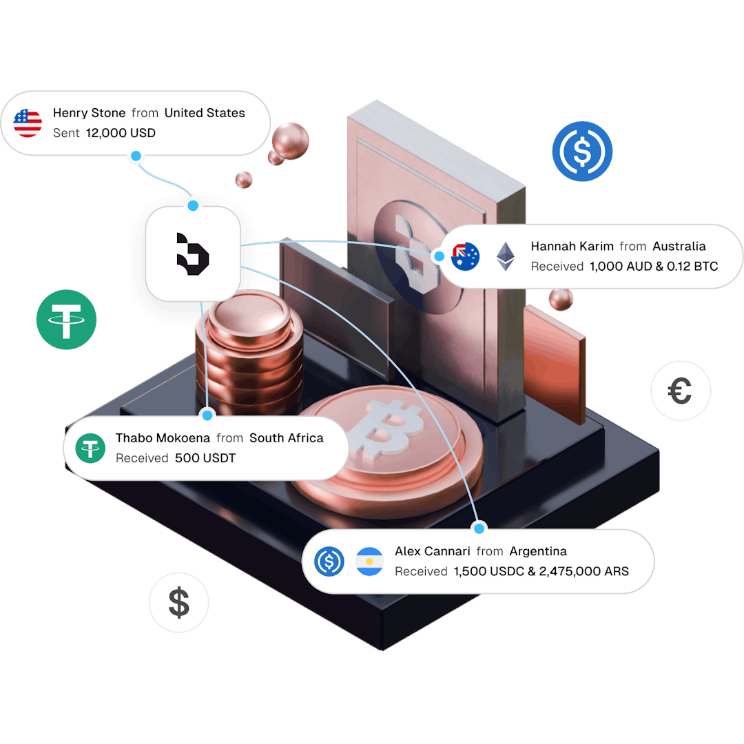 Receive payments in the currency that works best for you—whether it’s local local currency, stablecoins, or leading cryptocurrencies like Bitcoin. Flexibility and control are in your hands.